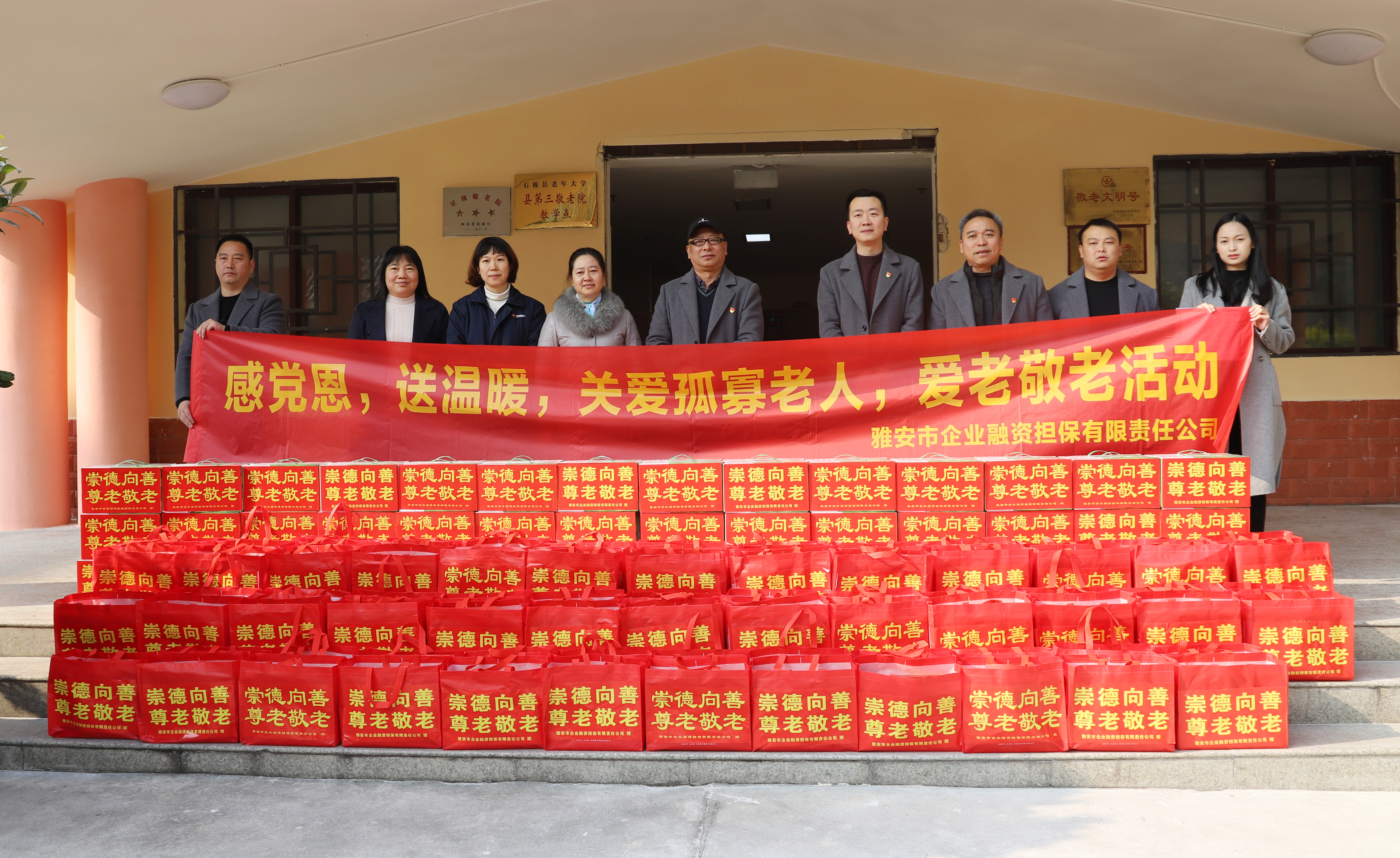 為了弘揚(yáng)中華民族尊老、敬老、愛(ài)老、助老的傳統(tǒng)美德,12月28日,市擔(dān)保公司董事長(zhǎng)尹福健、總經(jīng)理胡志煜一行去到石棉縣第三敬老院,開(kāi)展“感黨恩、送溫暖,關(guān)愛(ài)孤寡老人”愛(ài)老敬老活動(dòng),為該敬老院的84名老人送去了冬日的關(guān)愛(ài)和溫暖。